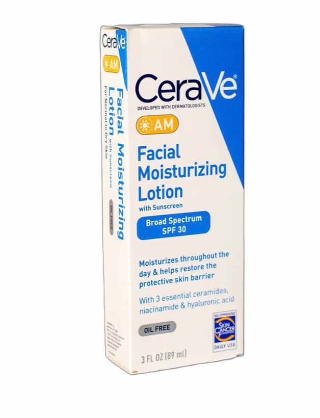 لوسیون مرطوب کننده صورت CeraVe AM با کرم ضد آفتاب که توسط متخصصان پوست ساخته شده است، در طول روز مرطوب می شود و به بازگرداندن سد محافظ پوست کمک می کند. این لوسیون ضد آفتاب با ضد آفتاب با طیف وسیع SPF 30 برای محافظت روزانه در برابر اشعه ماوراء بنفش، از پوست شما در برابر اشعه های مضر UVA و UVB فرموله شده است.