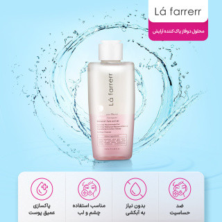 بهتر است قبل از شستشوی پوست صورت، آلودگیها و مواد آرایشی روی پوست را پاک کرد و بعد پوست را شستشو داد. این کار موجب به حداقل رسیدن احتمال باقی ماندن چربیها و مواد آرایشی روی پوست شده و به پاکسازی بهتر و عمیقتر منافذ پوست کمک زیادی میکند و سبب شادابی و طراوت بیشتر پوست میشود. برای این منظور باید از پاک کنندههای آرایش مناسب پوست استفاده کرد که محلول آرایش پاک کن گونهای از آنهاست. محلول دوفاز پاک کننده آرایش صورت لافارر، پاککننده سریع و موثر مواد آرایشی حتی مواد ضدآب بوده و موجب پاکسازی عمیق منافذ پوست میشود، همچنین برای پوست صورت و چشم و لب قابل استفاده است. این محصول حاوی عصاره خیار، روغن سویا، عصاره بابونه، عصاره جوانه گندم، گل پنیرک است و موجب رطوبترسانی پوست شده و در افزایش نرمی و لطافت پوست موثر است. محلول دوفاز پاک کننده آرایش صورت لافارر ضد التهاب و تسکین دهنده پوست است و با تغذیه مناسب بافت پوست به شادابی و طراوت پوست کمک میکند. این محلول دوفاز غیر روغنی و ضدحساسیت است و از ایجاد آلرژی پوستی پیشگیری میکند و برای استفاده چشمهای حساس مناسب است.