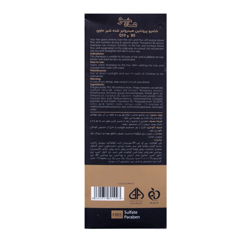 شامپو حرفهای ماه سو Mahsoo مدل After Keratin با فرمول ملایم و بدون سولفات، برای مراقبت پس از کراتین طراحی شده است. این شامپو ضمن پاکسازی موثر مو و پوست سر، با حفظ تعادل رطوبتی، از خشکی، وز و آسیب تارهای مو جلوگیری میکند. استفاده منظم آن باعث افزایش ماندگاری کراتین، درخشندگی و نرمی میشود و به سلامت کلی مو کمک میکند. مناسب موهای رنگشده، آسیبدیده و پس از خدمات کراتینه است و میتواند نتیجه کراتین را طولانیتر نگه دارد.