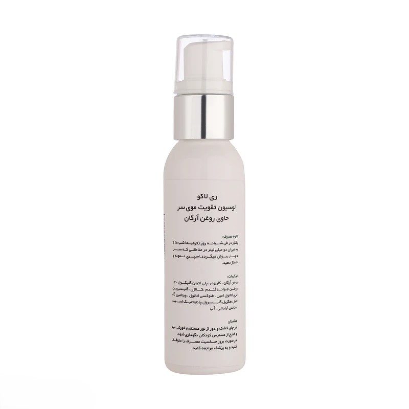 لوسیون تقویت کننده مو ری لاکو مدل آرگان با عصاره غنی روغن آرگان به تقویت ریشه مو و جلوگیری از ریزش کمک میکند. این لوسیون با کنترل چربی کف سر و تنظیم pH، شرایط رشد سالم مو را فراهم میسازد و التهاب یا خارش پوست سر را کاهش میدهد. استفاده منظم از آن میتواند باعث افزایش درخشندگی، نرمی و شادابی مو شود و رشد مجدد موهای ضعیف را تحریک کند. این محصول برای انواع مو مناسب است و باعث بهبود ساختار کلی فولیکولها میشود.